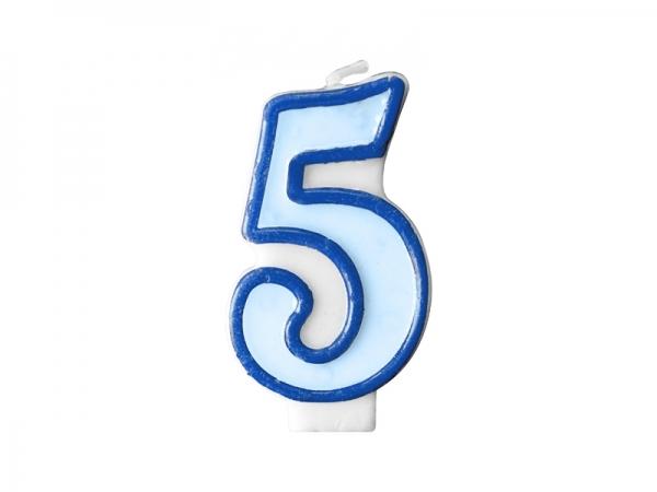 Tortová sviečka, číslo "5" v modrej farbe