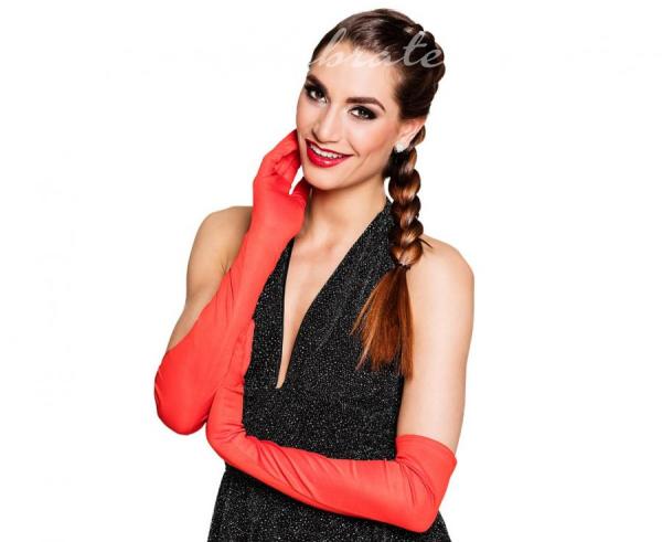 Rukavice saténové červené extra dlhé